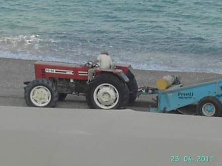 Strand wird gesäubertStrand wird von Steinen gesäubert; ziemlich laut