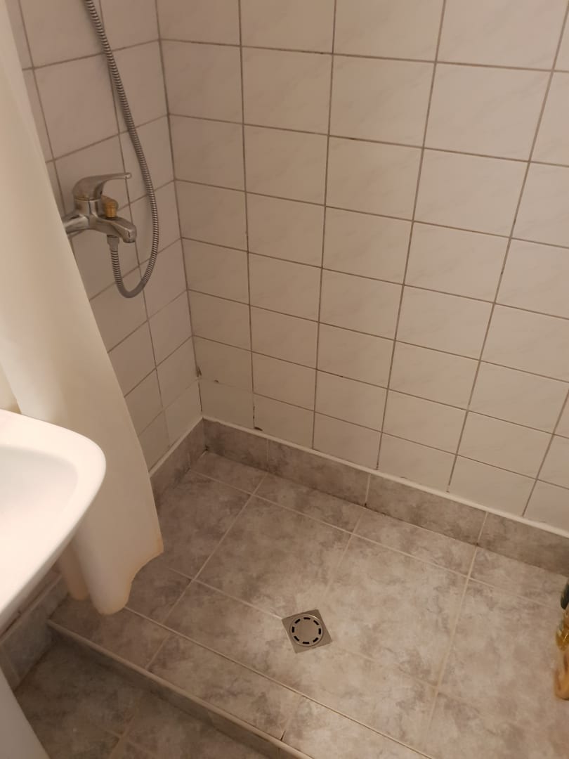 Dusche überall mit Schimmel. Amatur total verkaklt.