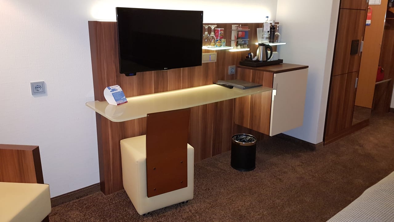 Zimmer, TV, Minibar, Tisch, Stuhl