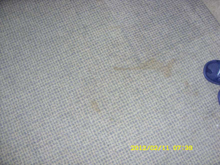 Auslegware im ZimmerAuf dem Bild gut zu erkennen, die stark verschmutze Auslegware (nur ein Fleck, von mehreren)