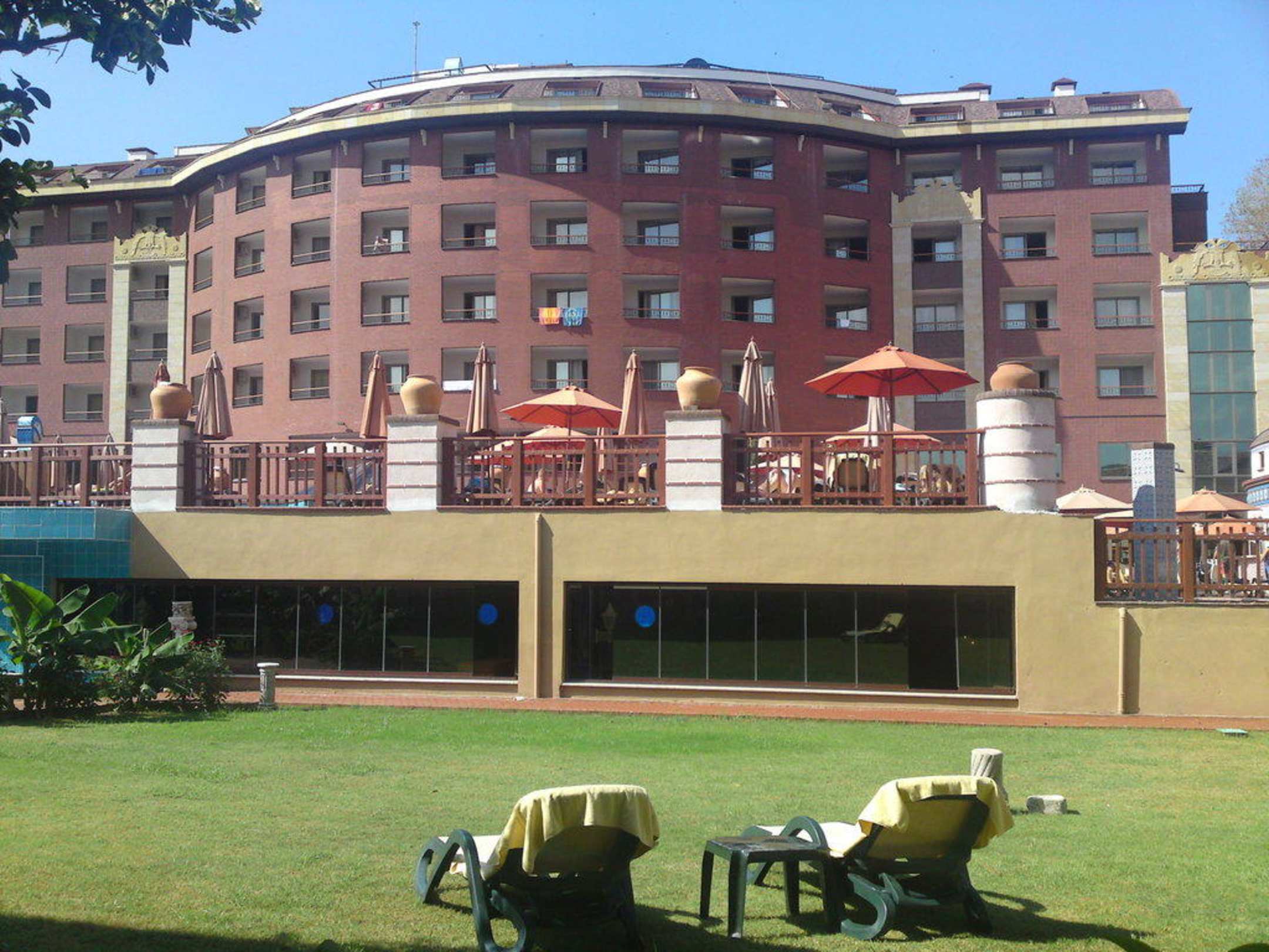Garten mit Blick auf Hotel
