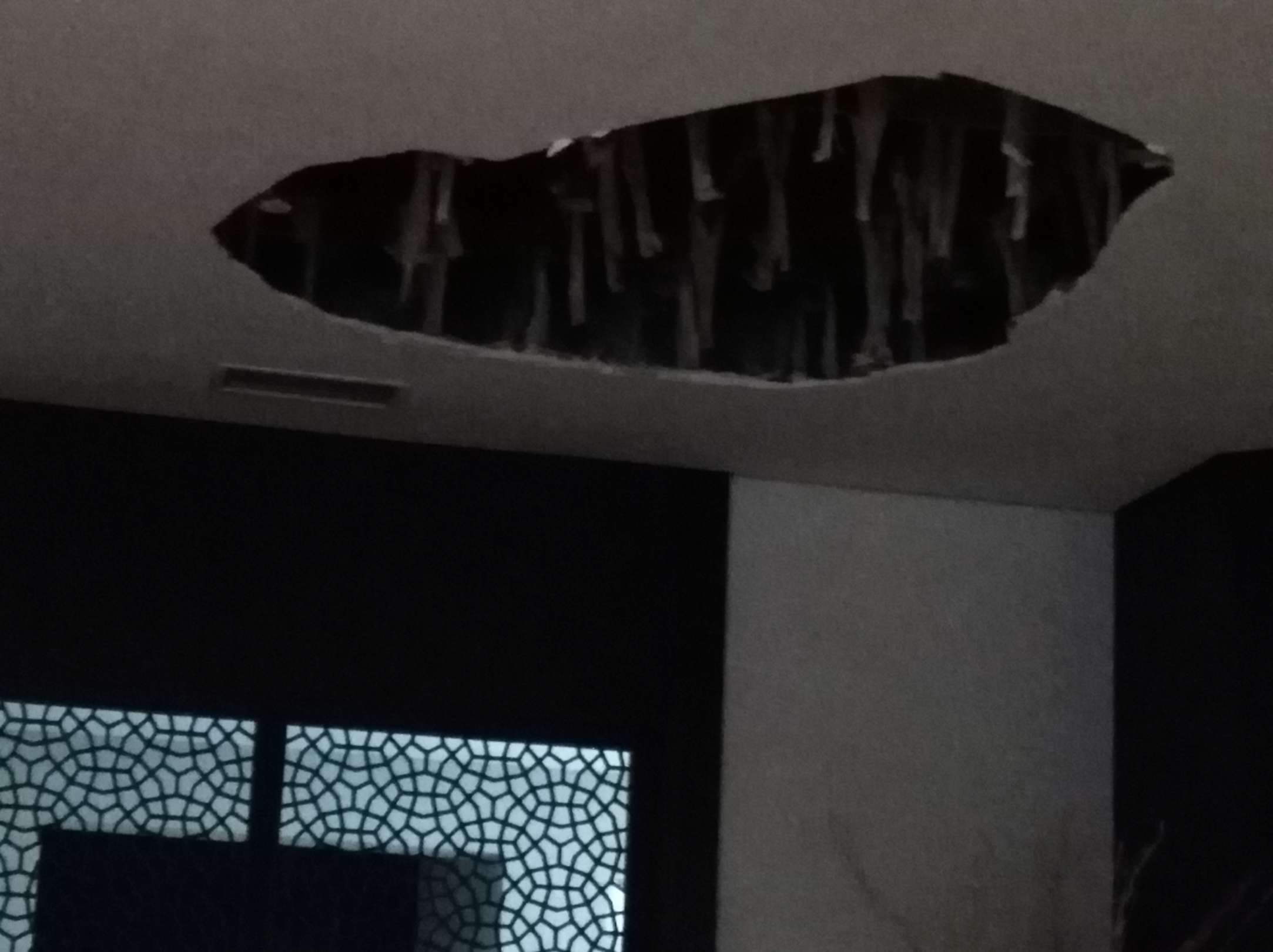 Neben der Bar, Decke runter gekommen nach einem Tag Starkregen.