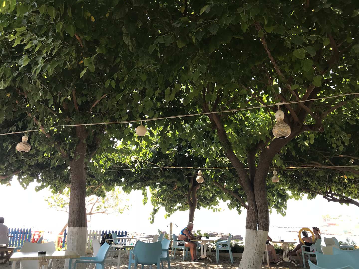 Schönster Bereich . Mit Bäumen und Schatten. Schöner leiser chilliger Musik und Hollywood Schaukeln. Von 12-14 Uhr selbstgemachte türkische Pancake: sehr lecker !