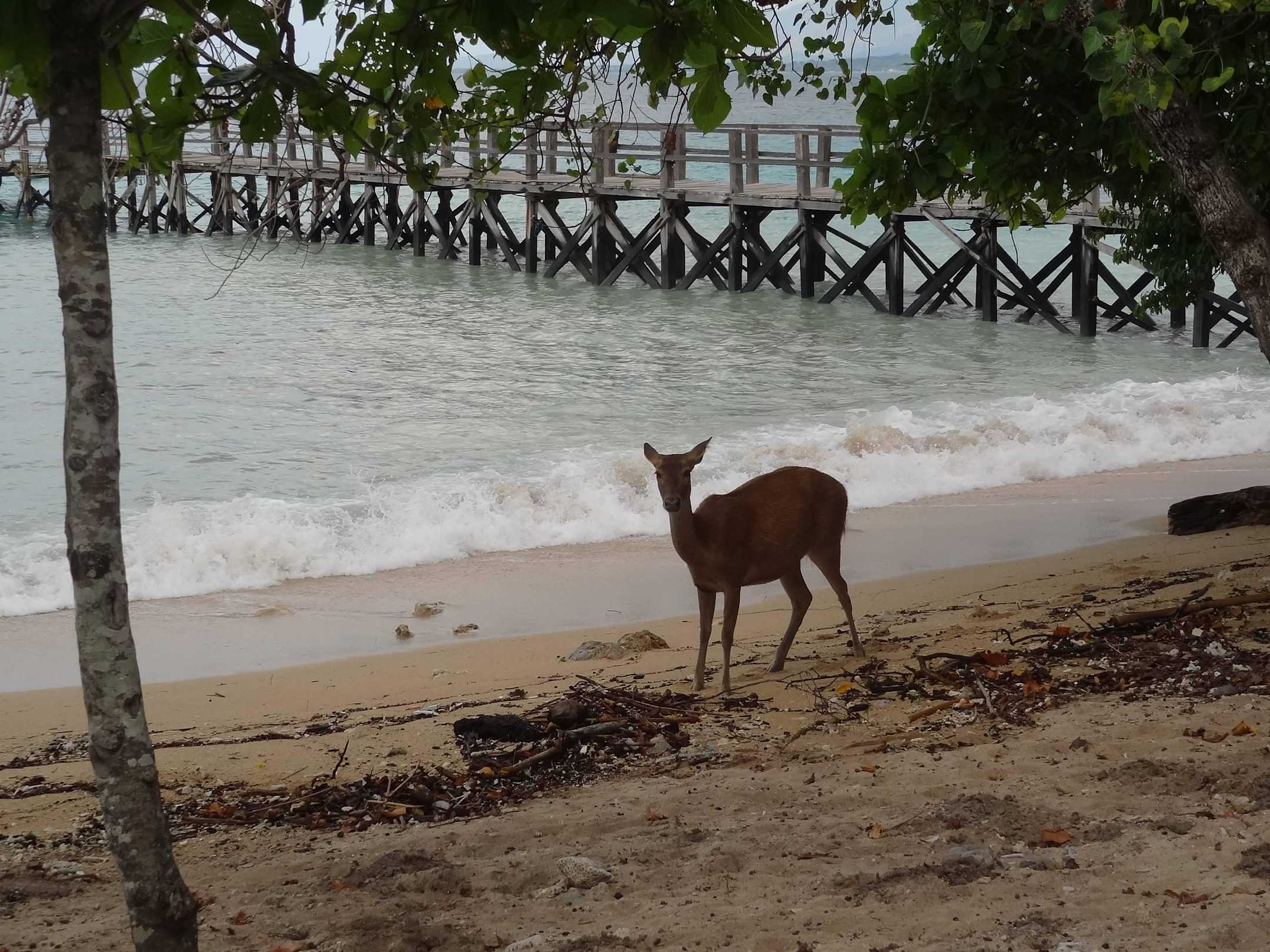 Reh am Strand, vom Steg kann man gut Schnorcheln!