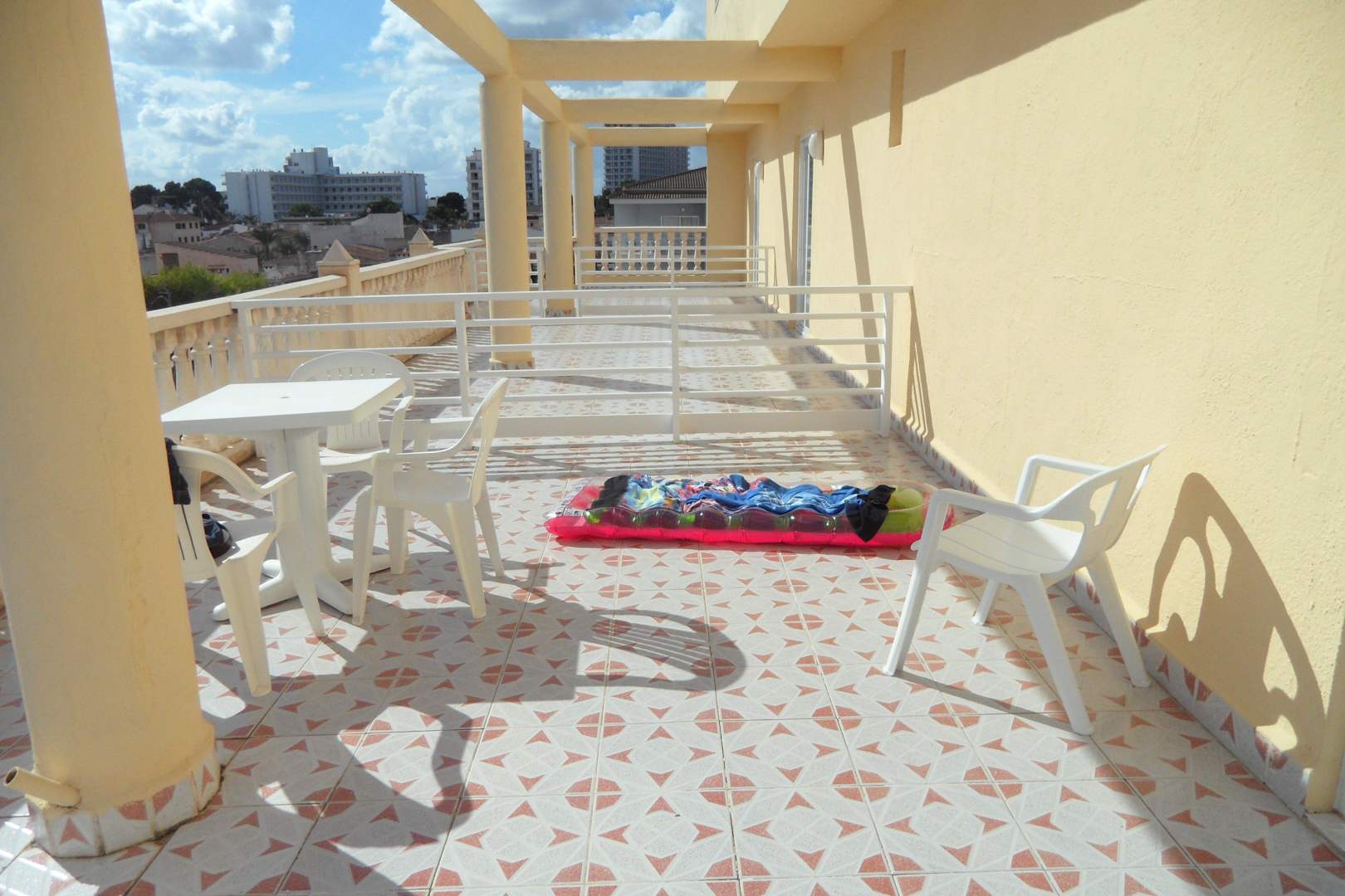 Die Terrasse mit freiem Blick zu den Nachbarn