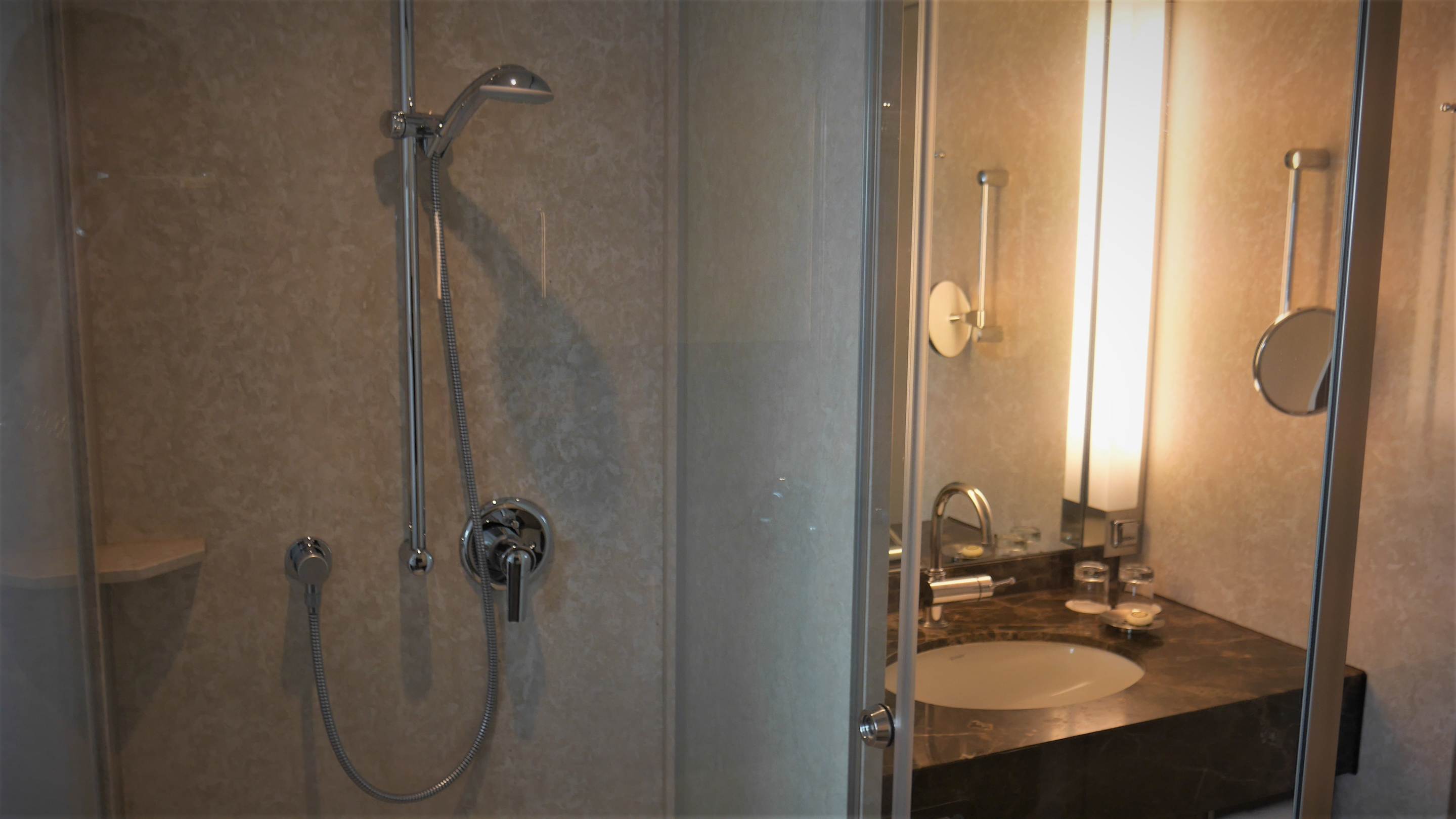 Komfortdusche und Waschtisch