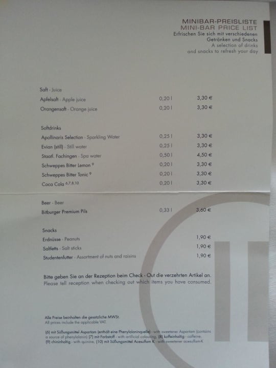 Minibar-Preise