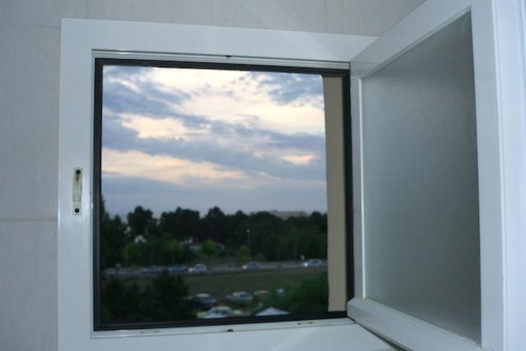 Blick durch das Fenster im Badezimmer