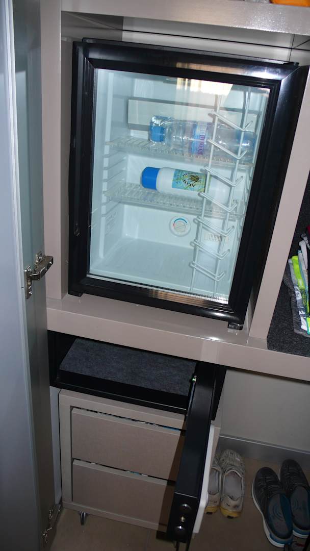 ZimmerDie Minibar - leider kühlt sie kaum und ist wohl ehr ein Weinschrank.