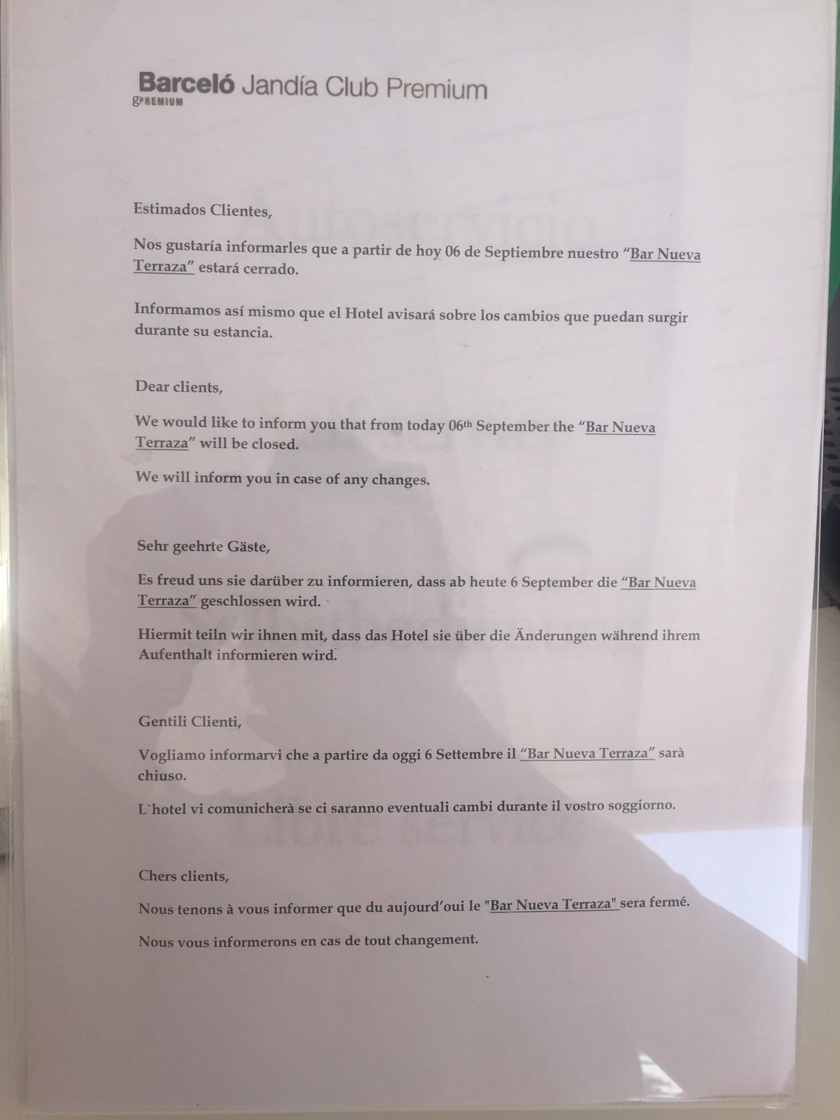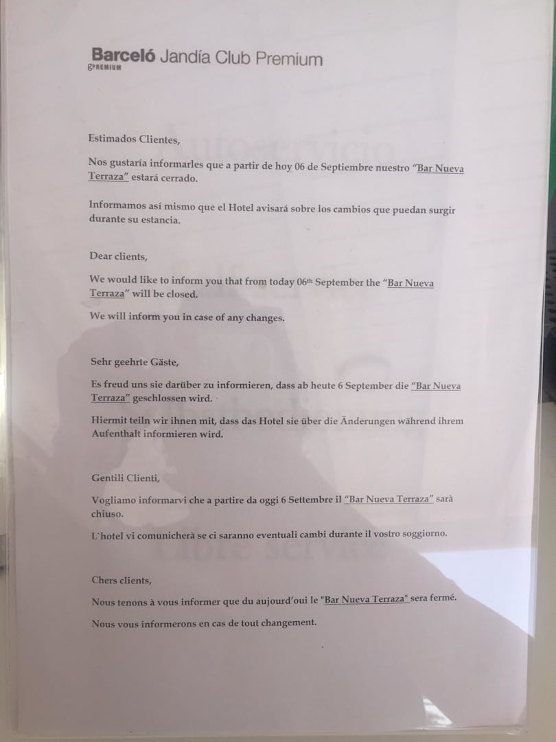 Aushang - Bar geschlossen