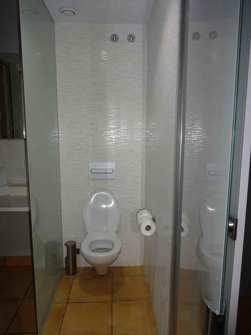 Toilette getrennt von Dusche und Waschbecken