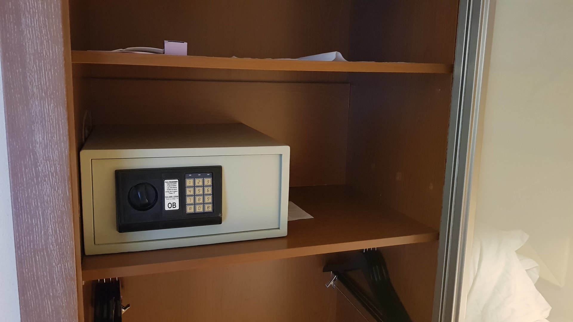 Kostenloser Safe im Schrank, fest verankert.