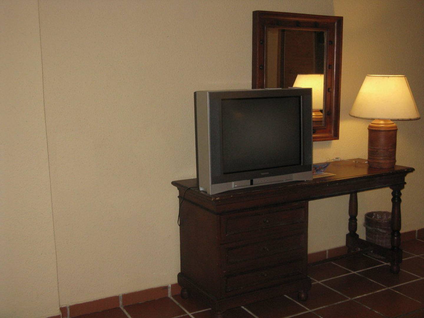 TV und Schreibtisch ohne Stuhl