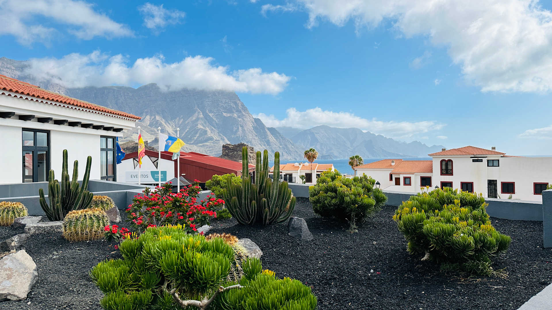 Der Ausblick von der Rooftopbar auf die Berge