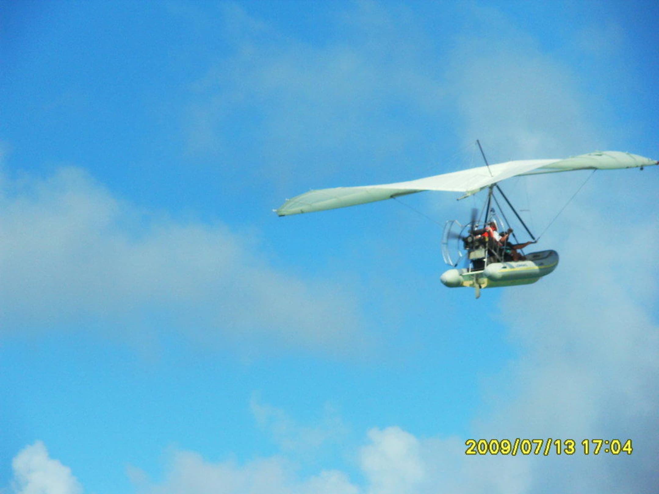 Luftiges FreizeitangebotFür Leute, die es luftig mögen, werden hier Rundflüge mit einem an einem Deltasegler festgemachten Gummiboot angeboten.
