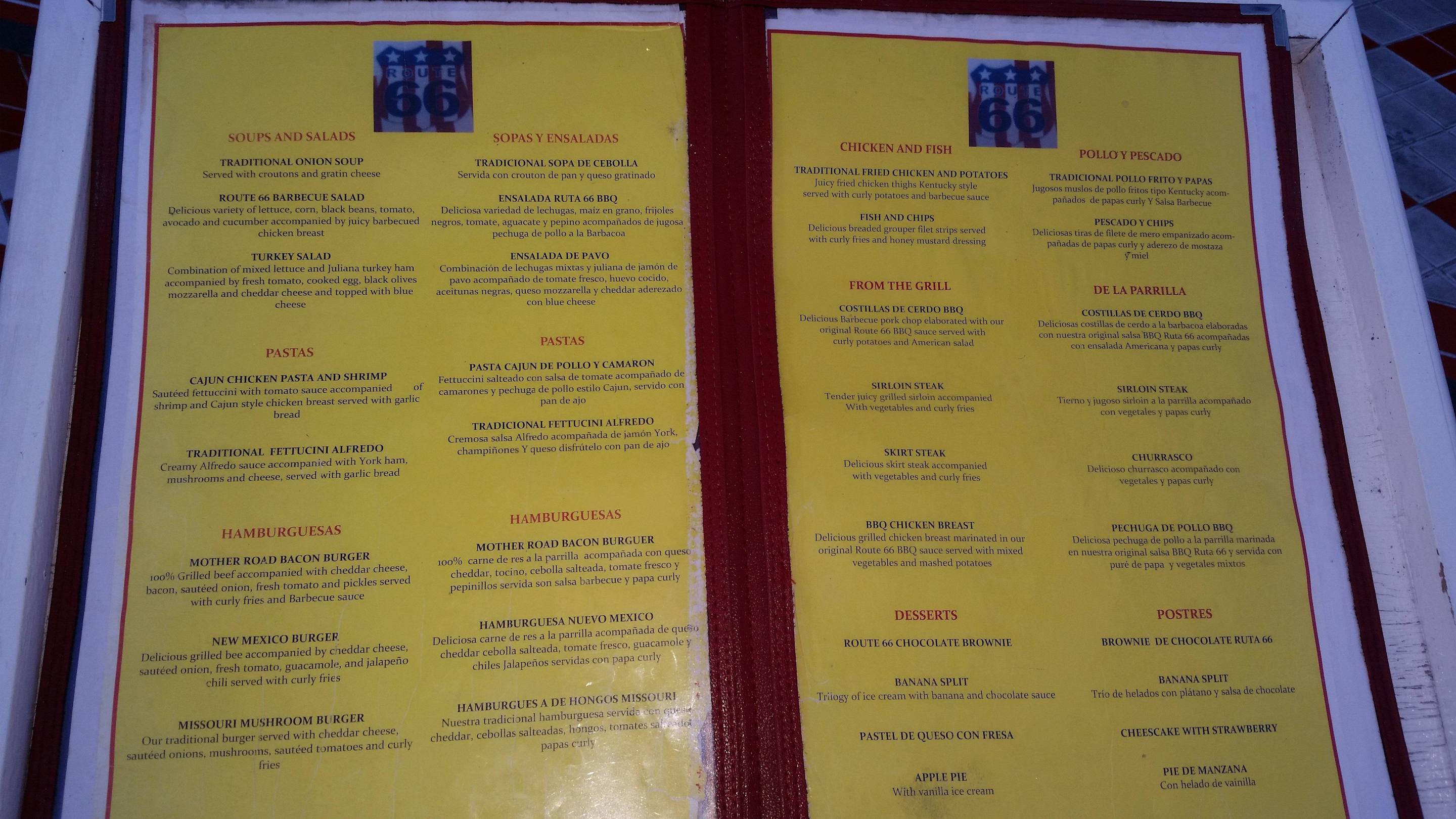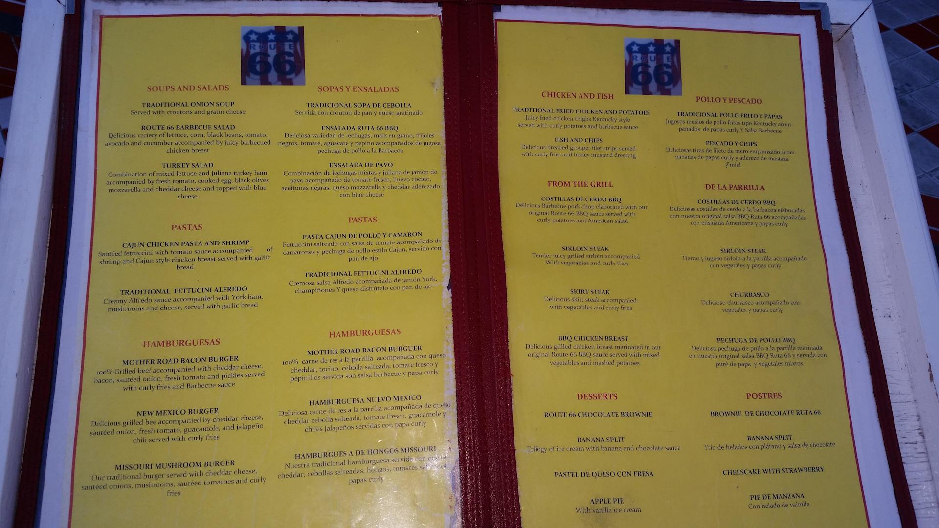 Speisekarte Route 66
