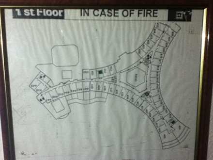 HotelplanAufteilungsplan des Hotels. Im Zentrtalen Lobbybereich reicht das WiFi Signal bis in die Zimmer.