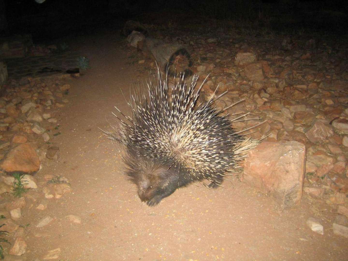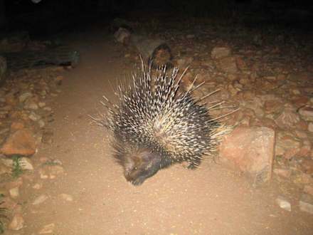 Stachelschwein beim Abendessen Okambara Elephant Lodge