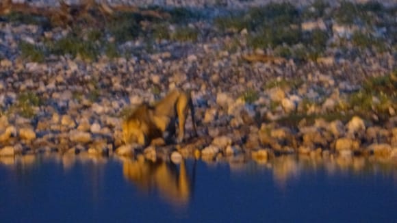 Ein Löwe -schlecht aufgenommen- früh morgens Okaukuejo Camp