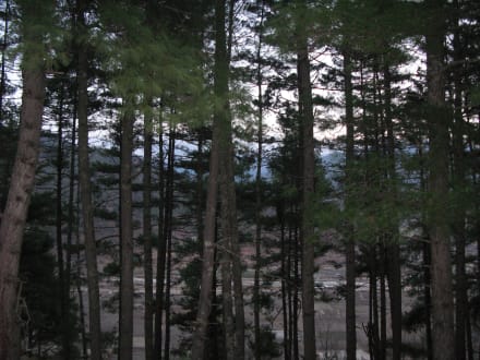 Wäldchen vor dem Bungalow; in der Ferne die Rollba Olathang Hotel
