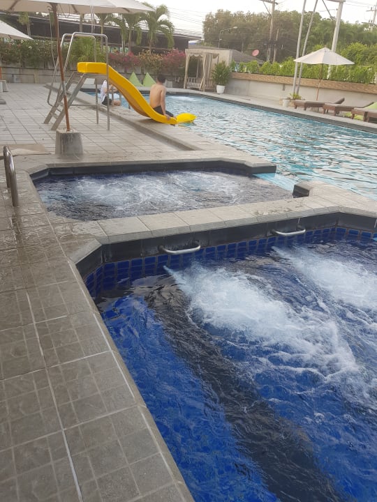 Jacuzzi und Strömungskanal in 2 Seitenbecken zum Schwimmer-Pool