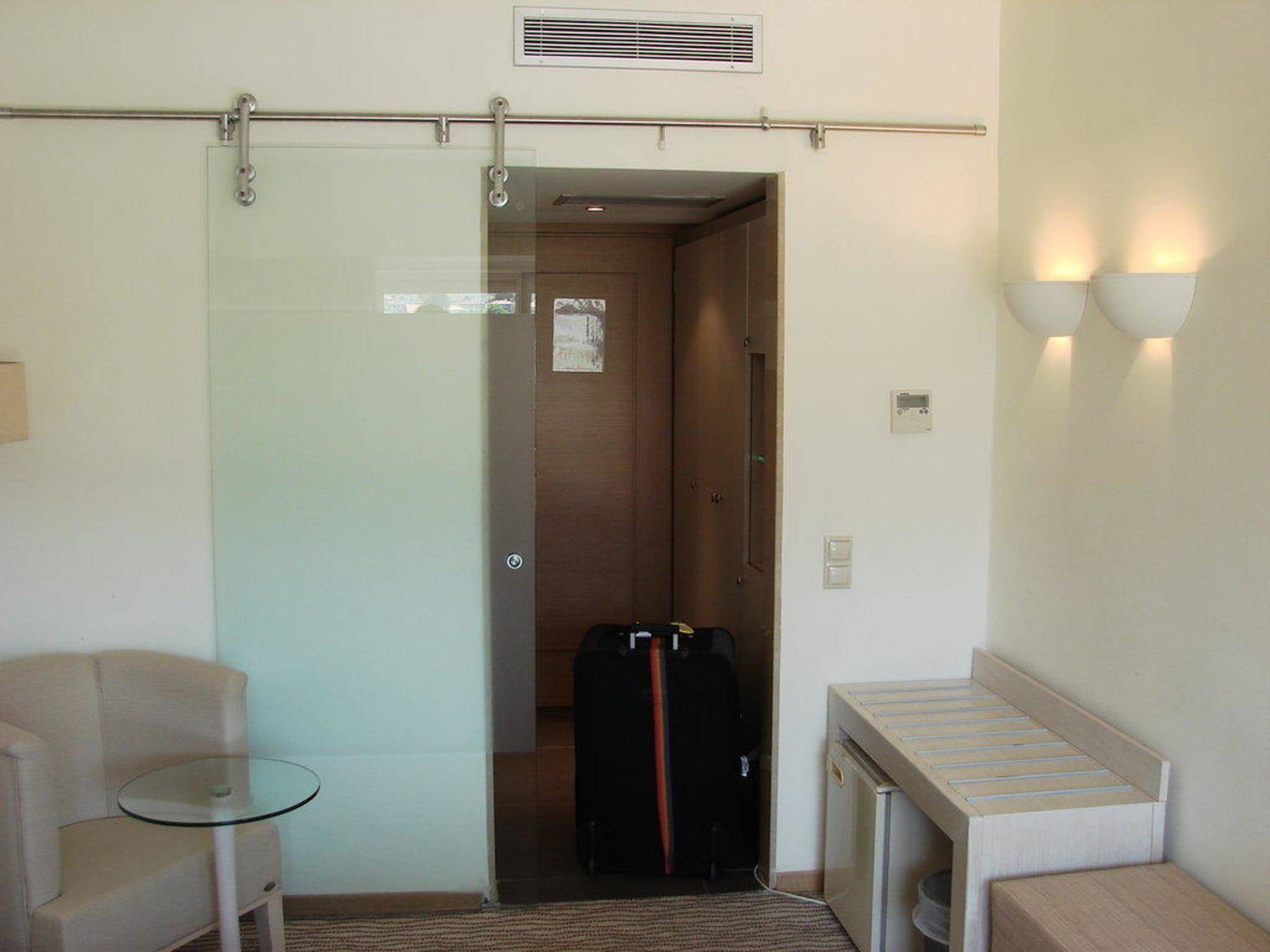 ZimmerblickBlick auf die einzige Tür im Zimmer.