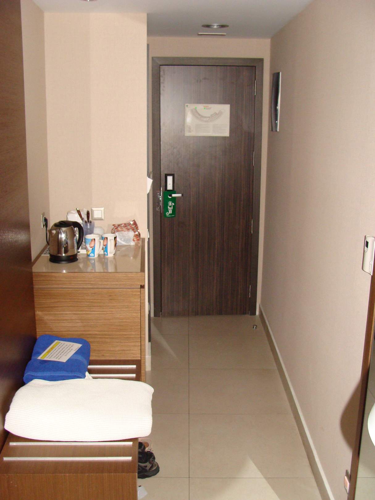 Przedpokój z lodówka i szafką na buty