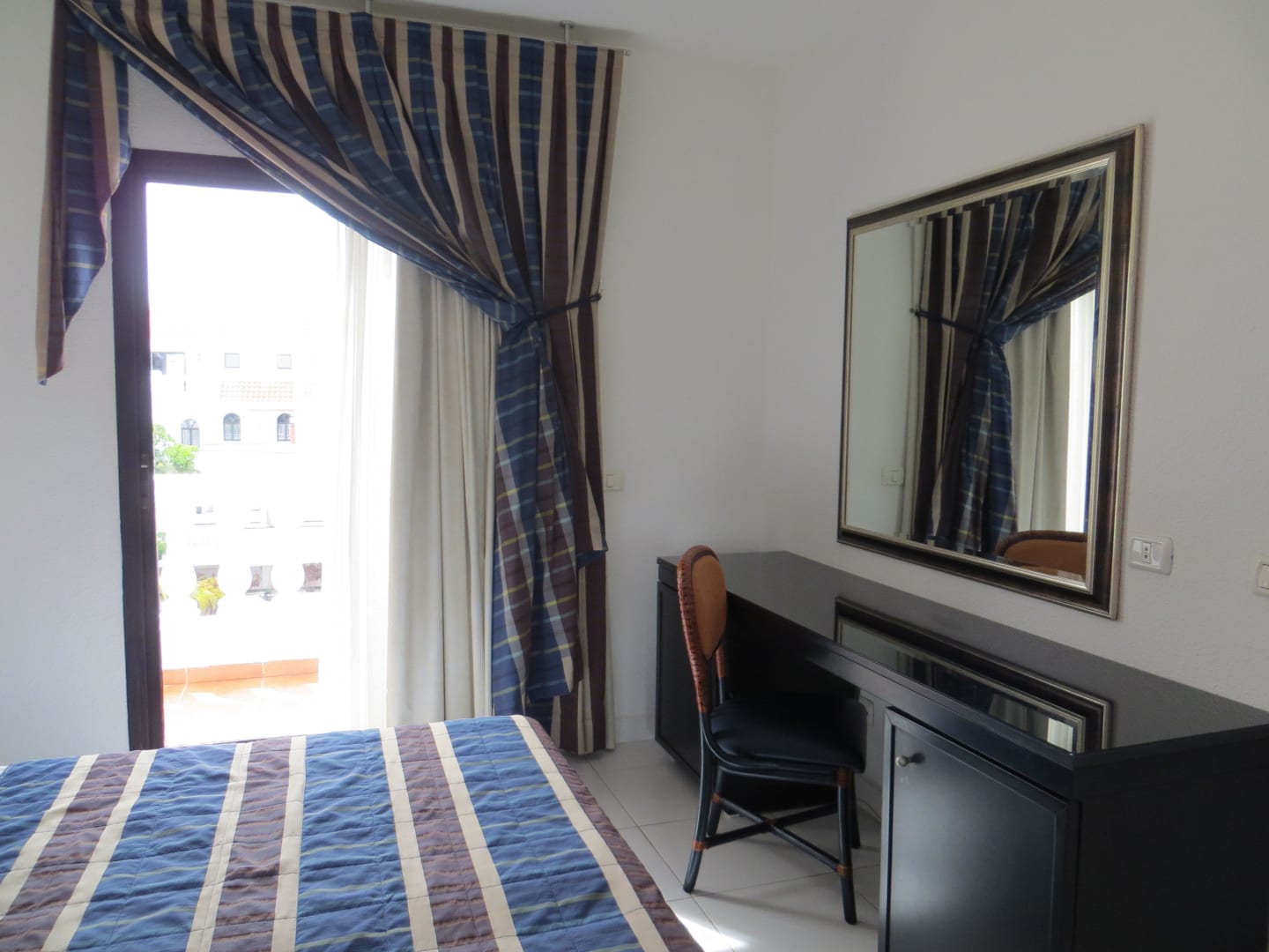 Wohneinheit 624, Schlafzimmer mit Tür zum Balkon.
