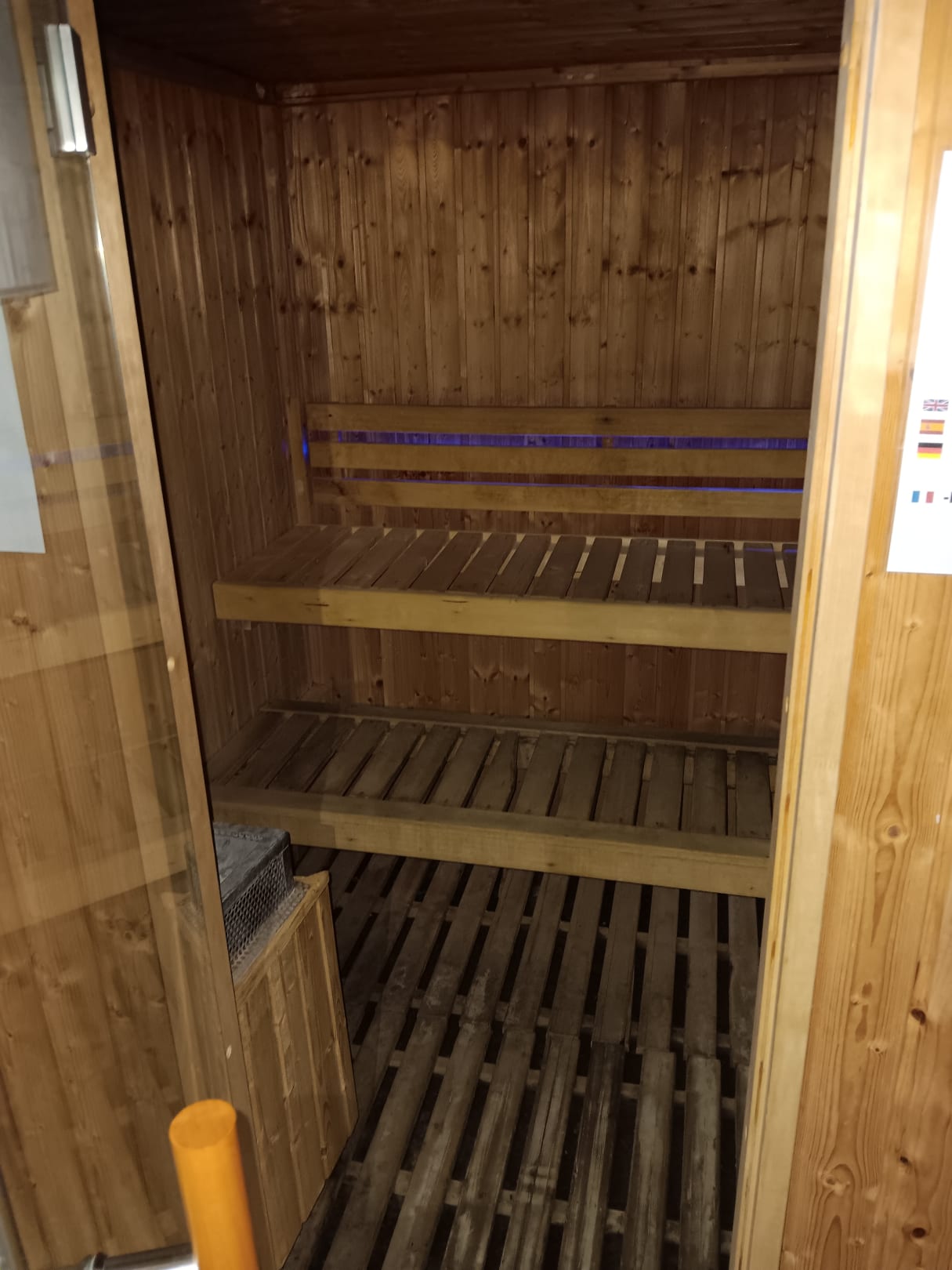 Sauna für "Saunisten" zu klein, nur Sitzen möglich. Männer und Frauen getrennt und Badekleidung muss angezogen sein (was für richtige Saunisten gar nicht geht)