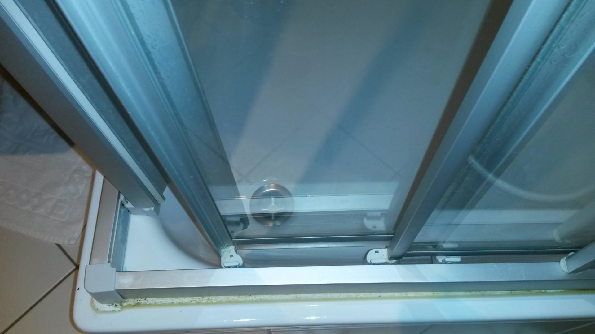 Detail der Dusche mit altem Dreck