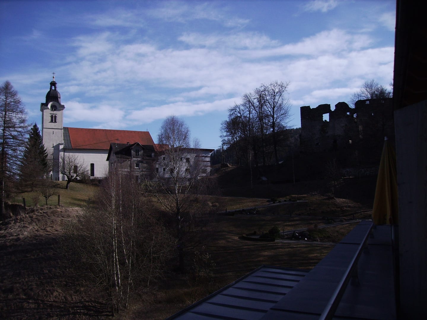 Kirche mit Burgruine