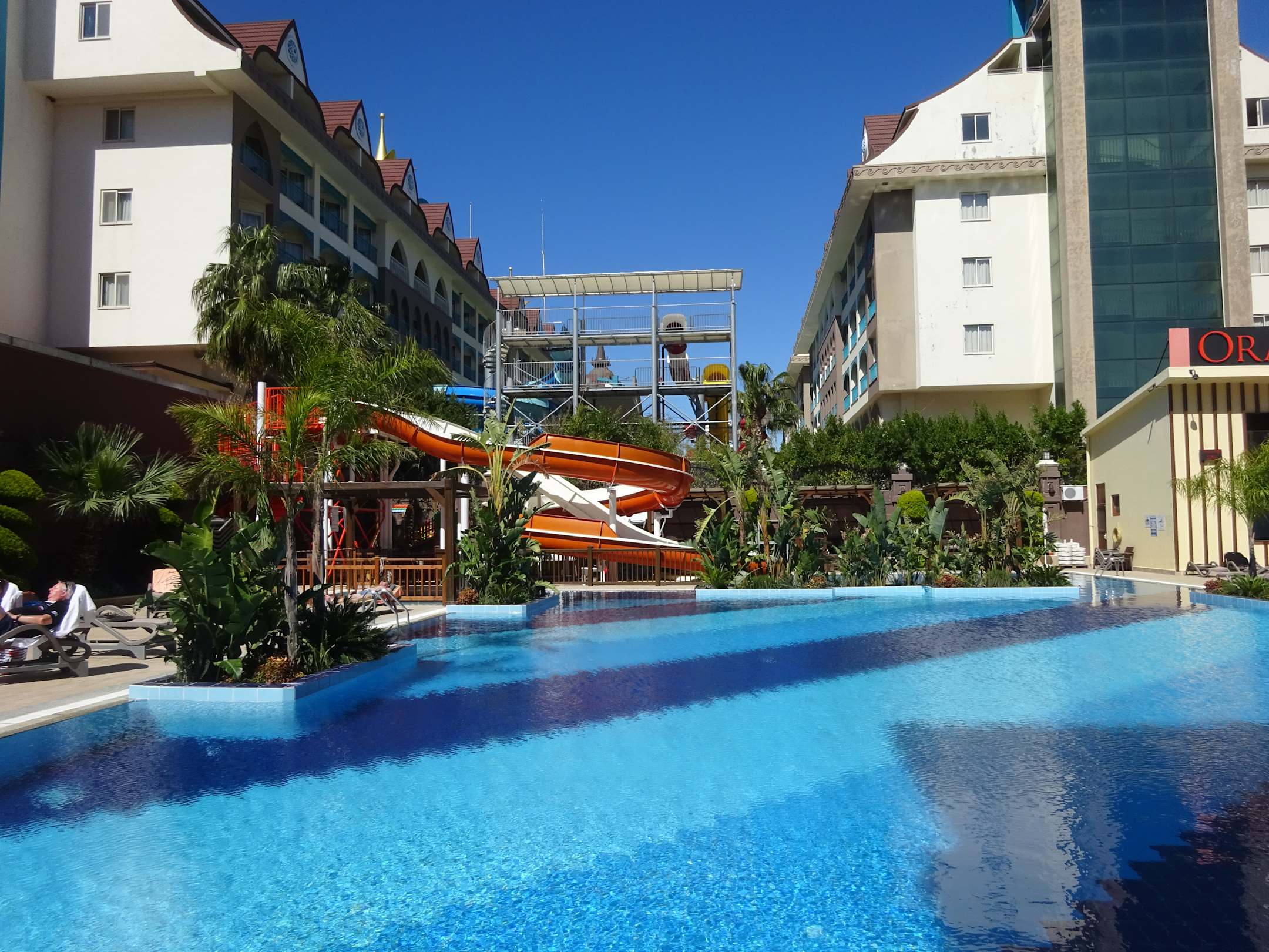 Schön angelegt aber wegen der Nachbarhotels nachmittags schattig