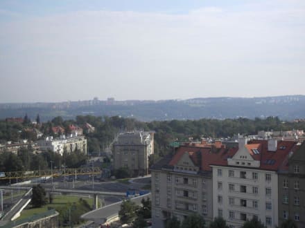 Blick aus dem Hotelzimmer in Richtung Moldau