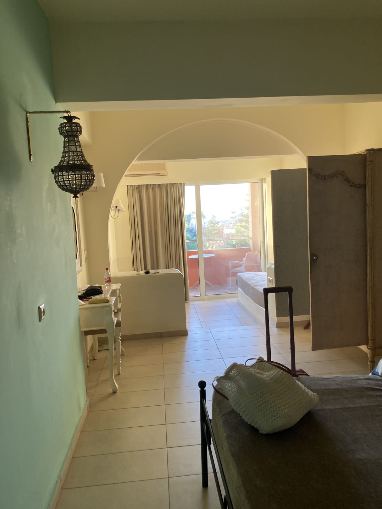 Die Suite war recht groß, aber schmal und ohne Tisch und Stühle…