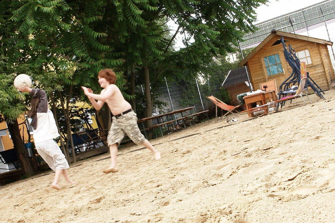 OSTEL Beachfunbrennball aktion mit den kids im wunderbaren ostel strandgarten mitten in berlin - prima idee (:-))