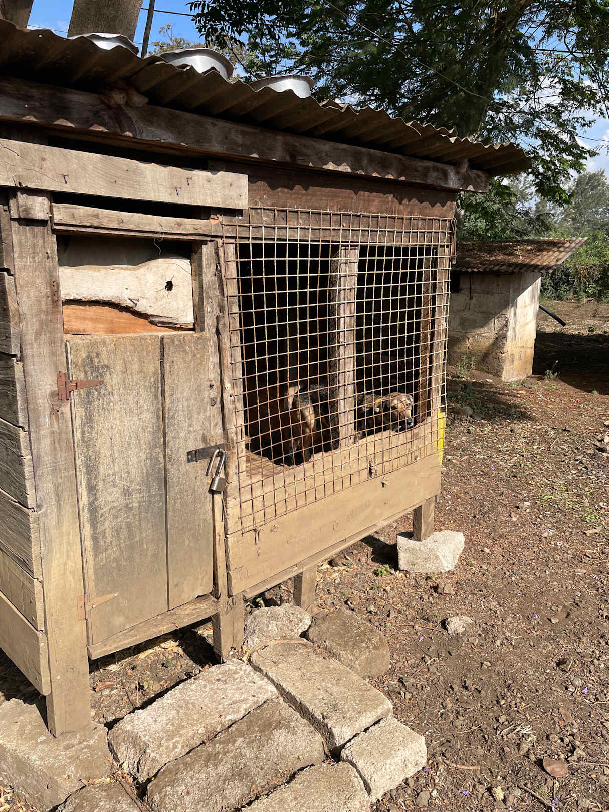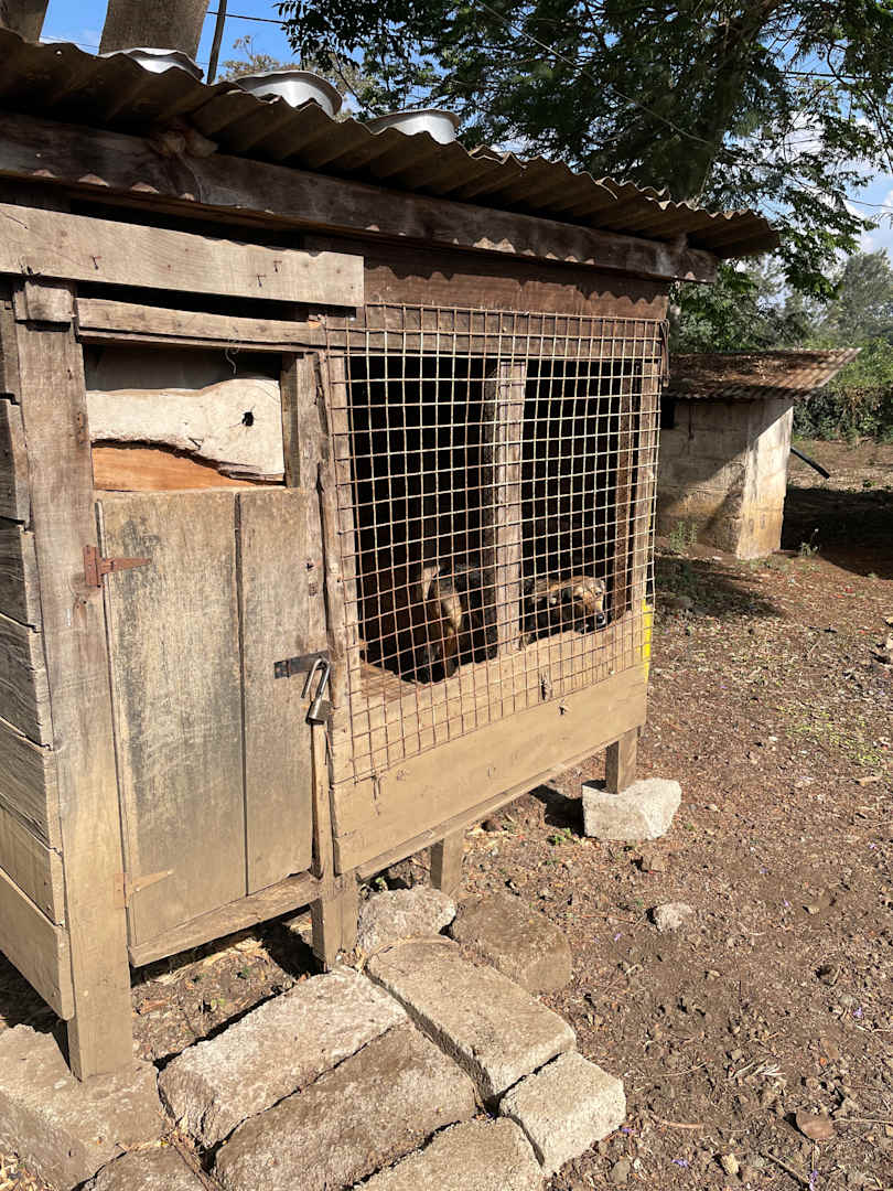 Hund im winzigen Käfig ohne Wasser