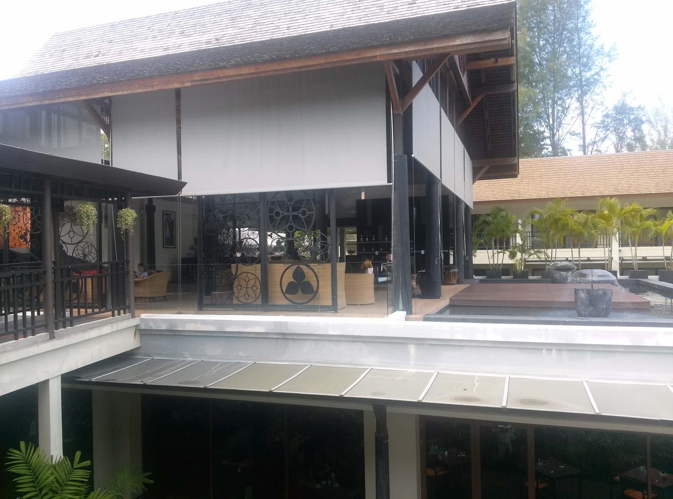 oben die Reception mit Lobby, unten das Restaurant