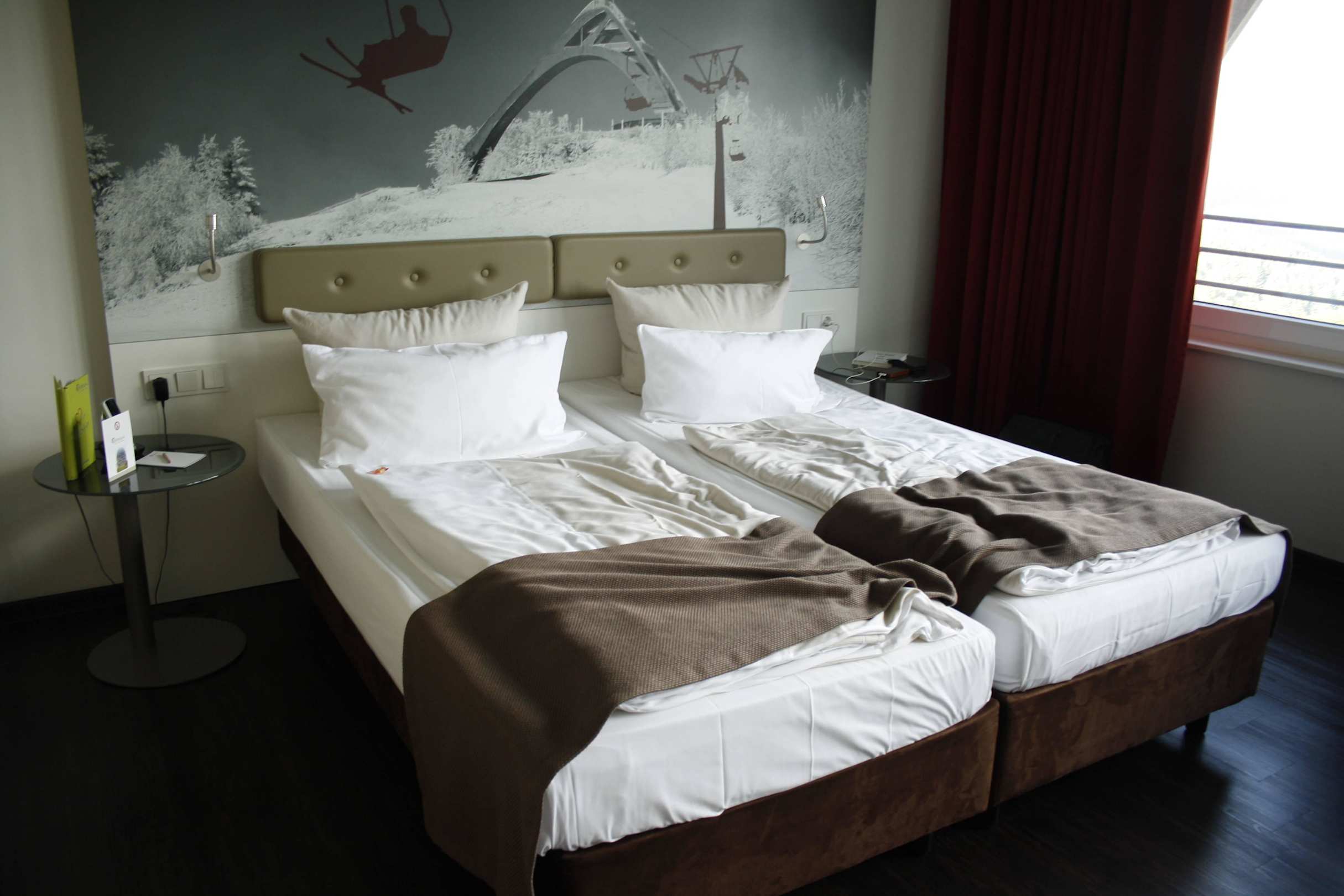 Wir hatten uns schon aufs Bett gelegt, weshalb das unordentlich aussieht.
