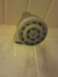 Duschkopf, verkalkt und verdreckt.