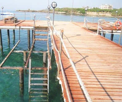 Holzsteg im Meer auch schon teilweise abgebaut.
