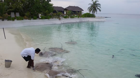 StrandAbendliches Fische füttern um 17.30 Uhr. Die Tiere sind meistens so 30 min vorher da und tagsüber sind sie weiter draußen