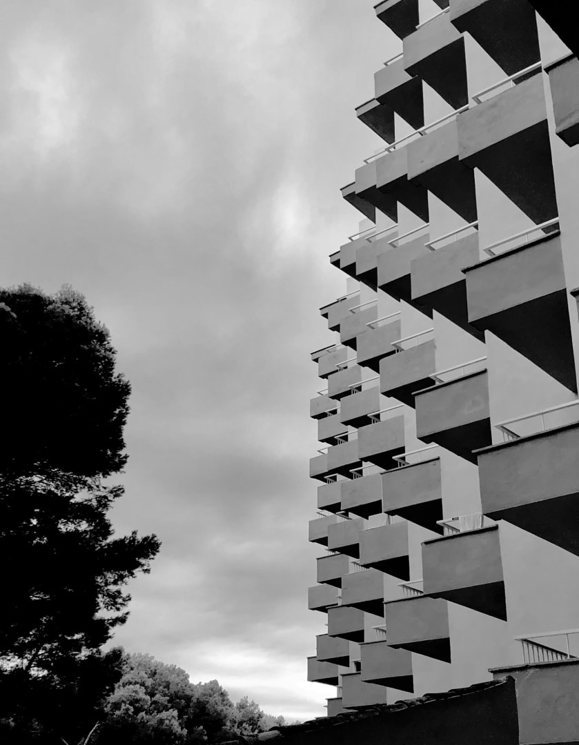 AußenansichtBetonbalkone als Aussicht, sobald die Ballermanngäste wieder wach sind leider sehr laut.