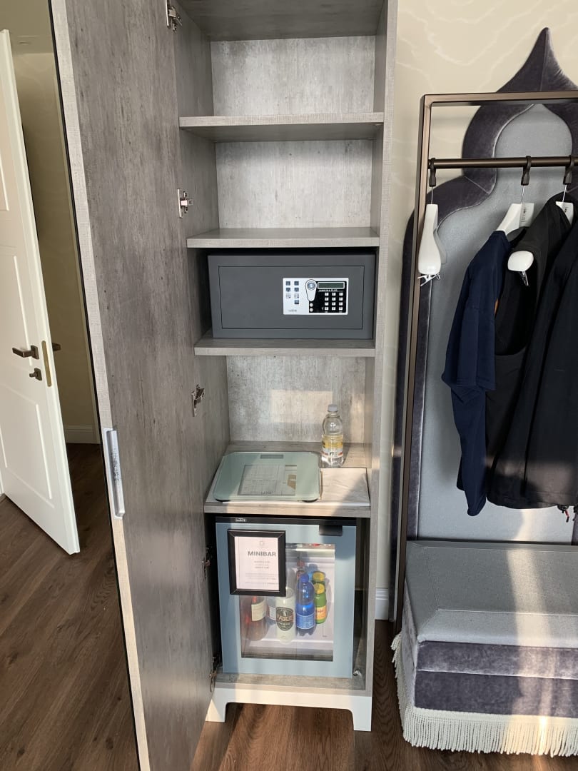 3 kleine Staufächer für Wäsche, das wars. Minibar ohne Gläser.