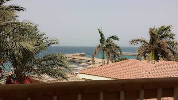 Blick vom Balkon auf den Strand und das Meer