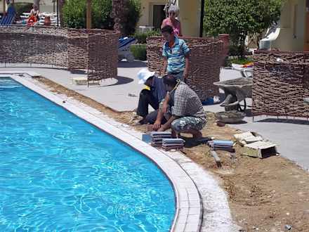 Arbeiten am Pool mitten am Tag
