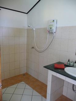 Dusche mit WarmwassererhitzerLeider war die Dusche sehr mickrig aufgrund fehlenden Drucks. Rechts daneben der Waschtisch.