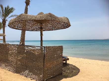 Schöner Hotelstrand mit Liegebuchten