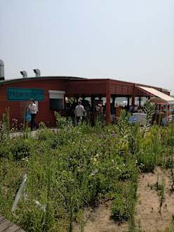Strandabschnitt mit Restaurant.