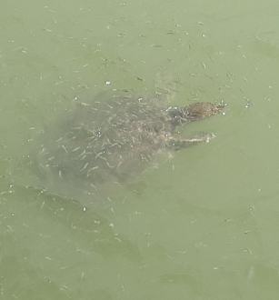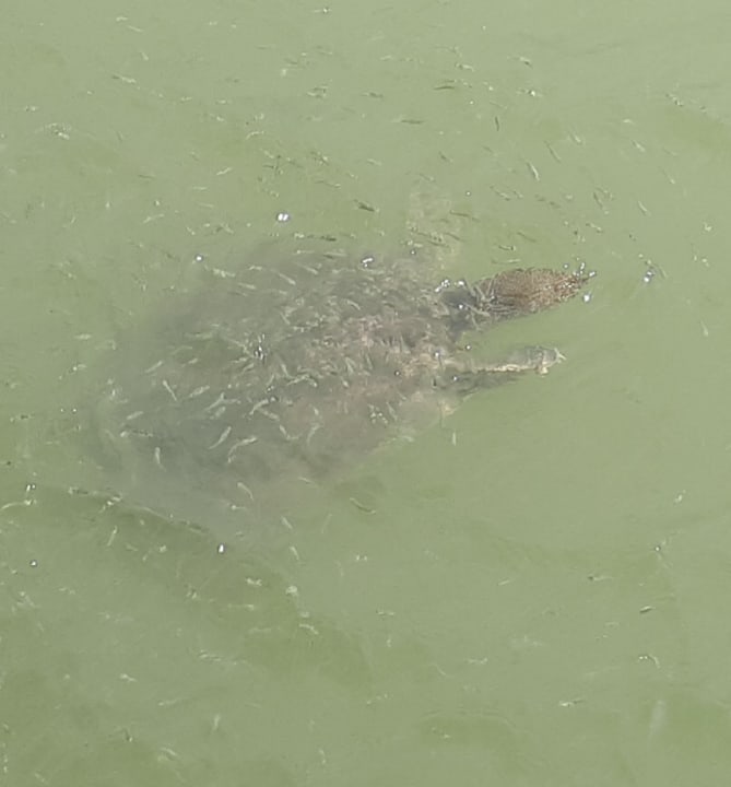 Schildkröten in unterschiedlichen Größen. Kleine Brücke am Strand