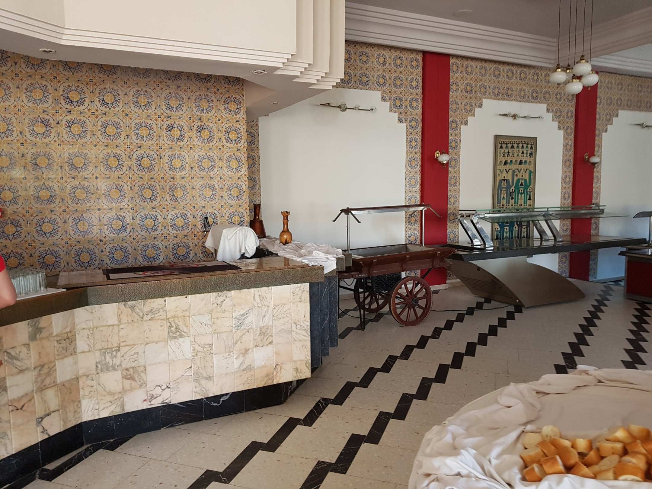 beim Frühstück, die Hälfte leer
